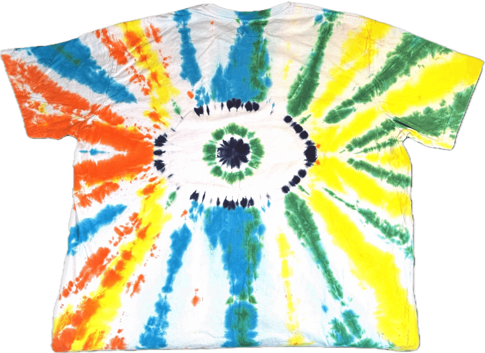 Super Flow Dyes Yo! All of my tie dye t-shirts combine kind design with vibrant and saturated colors. Eisley is all-seeing with blue, yellow, green, orange, white, black all-seeing eye pattern. The source t-shirt is an LAT Style 6901 – made out of their super soft 4.5 oz. 100% combed ringspun cotton jersey. Comes with EasyTearTM label. Double-needle hem sleeves and bottom. Sewn with 100% cotton thread. Produced by a WRAP certified garment factory in Bangladesh. I design and make all my tie dyes by hand with love and care in Oak Park, Illinois, USA.