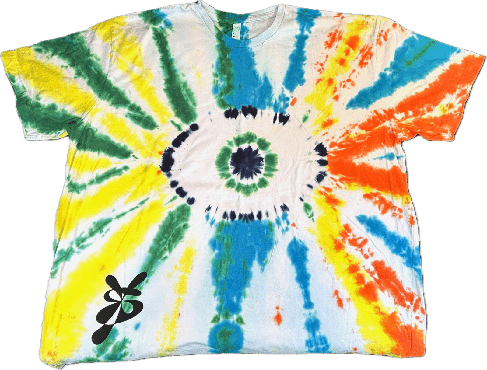 Super Flow Dyes Yo! I am proud to introduce all-seeing Eisley. All of my tie dye t-shirts combine kind design with vibrant and saturated colors. The source t-shirt is an LAT Style 6901 – made out of their super soft 4.5 oz. 100% combed ringspun cotton jersey. I design and make all my tie dyes by hand with love and care in Oak Park, Illinois, USA. Have fun and find your flow with Super Flow Dyes Yo!