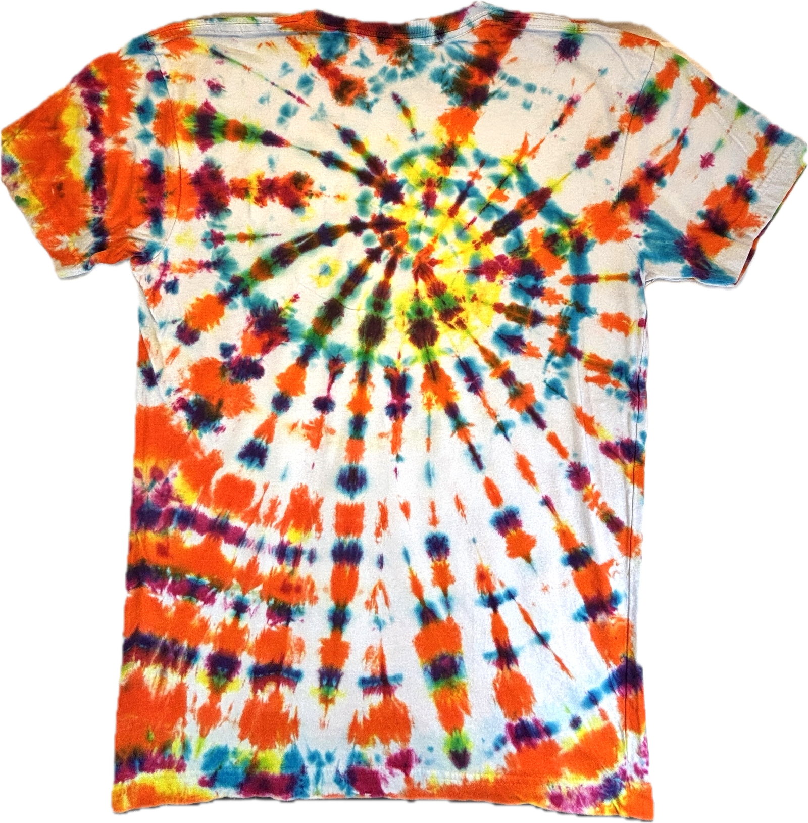 Super Flow Dyes Yo! All of my tie dye t-shirts combine kind design with vibrant and saturated colors. Udayan is party all the time! with rainbow, yellow, orange, red, purple, blue, green spiral rainbow pattern. The source t-shirt is an LAT Style 6901 – made out of their super soft 4.5 oz. 100% combed ringspun cotton jersey. Comes with EasyTearTM label. Double-needle hem sleeves and bottom. Sewn with 100% cotton thread. Produced by a WRAP certified garment factory in Bangladesh. I design and make all my tie dyes by hand with love and care in Oak Park, Illinois, USA.