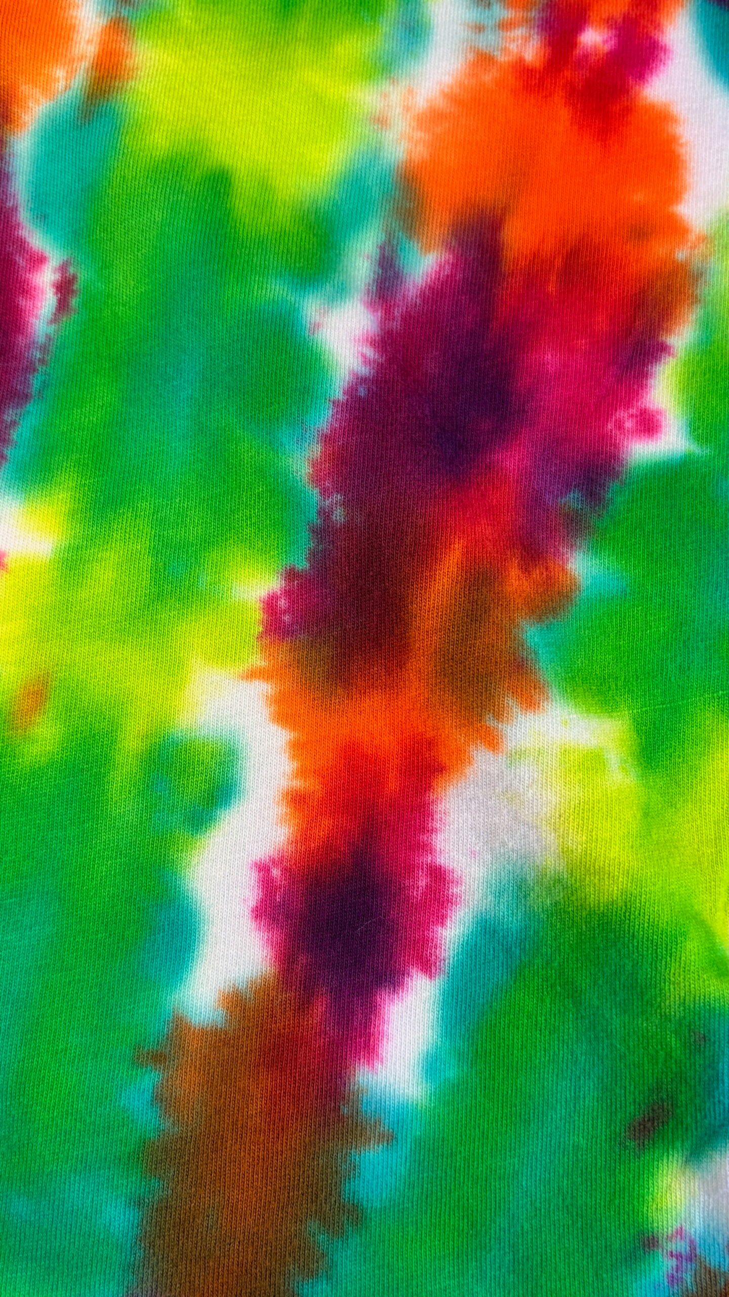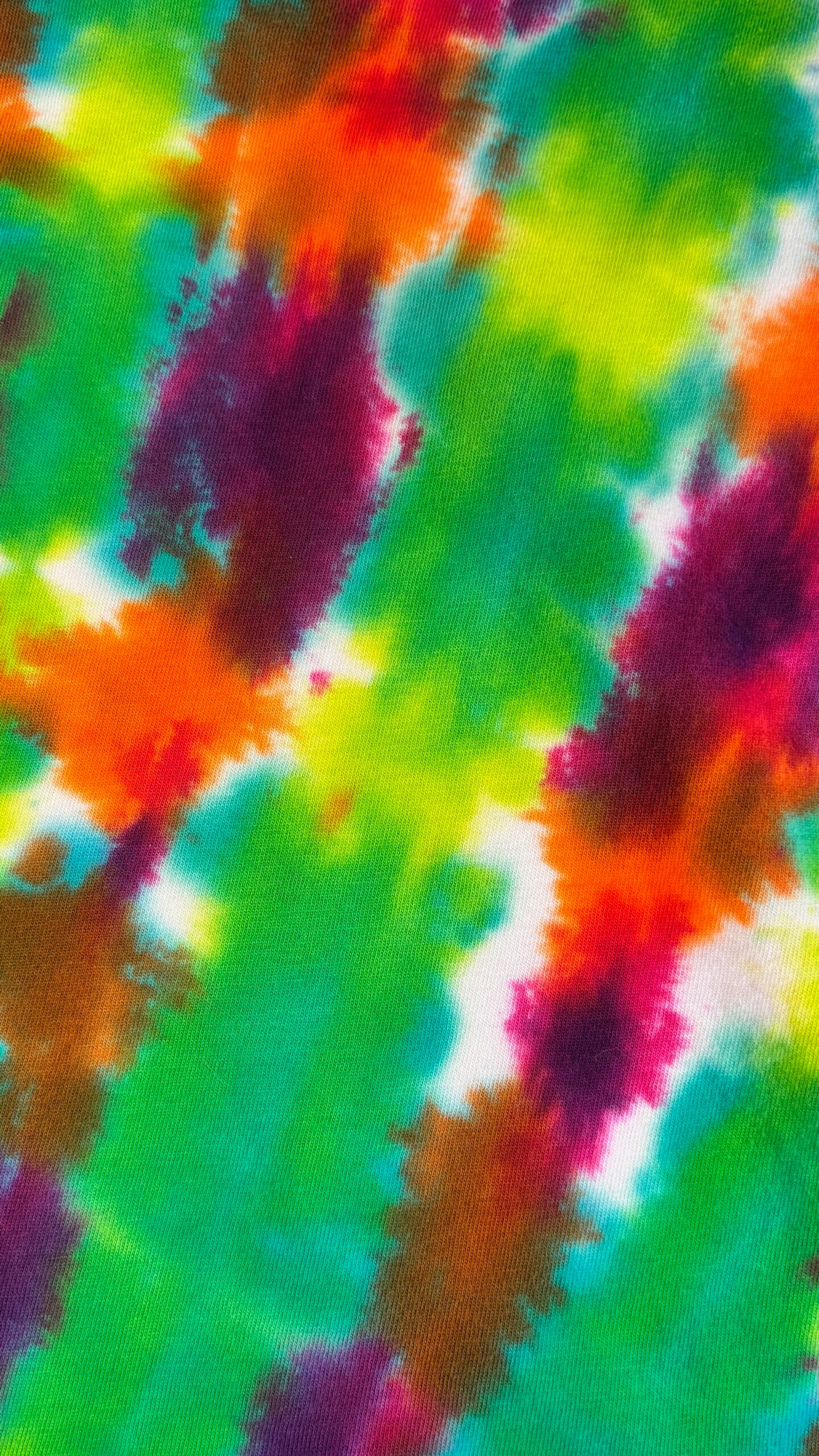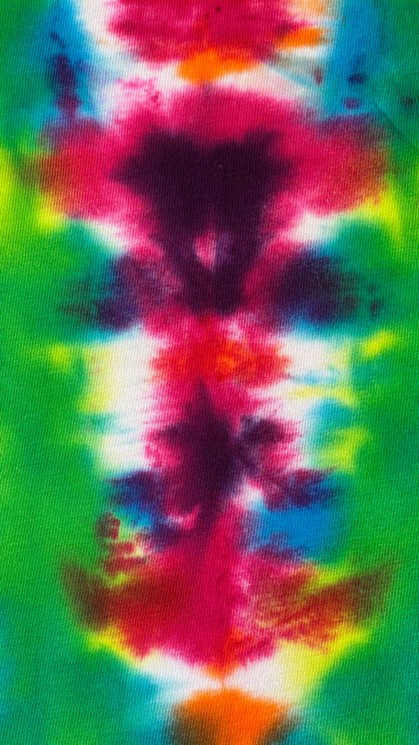 Super Flow Dyes Yo! All of my tie dye t-shirts combine kind design with vibrant and saturated colors. Yuko is contemplative with green, fuchsia, orange v-stripes pattern. The source t-shirt is an LAT Style 6901 – made out of their super soft 4.5 oz. 100% combed ringspun cotton jersey. Comes with EasyTearTM label. Double-needle hem sleeves and bottom. Sewn with 100% cotton thread. Produced by a WRAP certified garment factory in Bangladesh. I design and make all my tie dyes by hand with love and care in Oak Park, Illinois, USA.