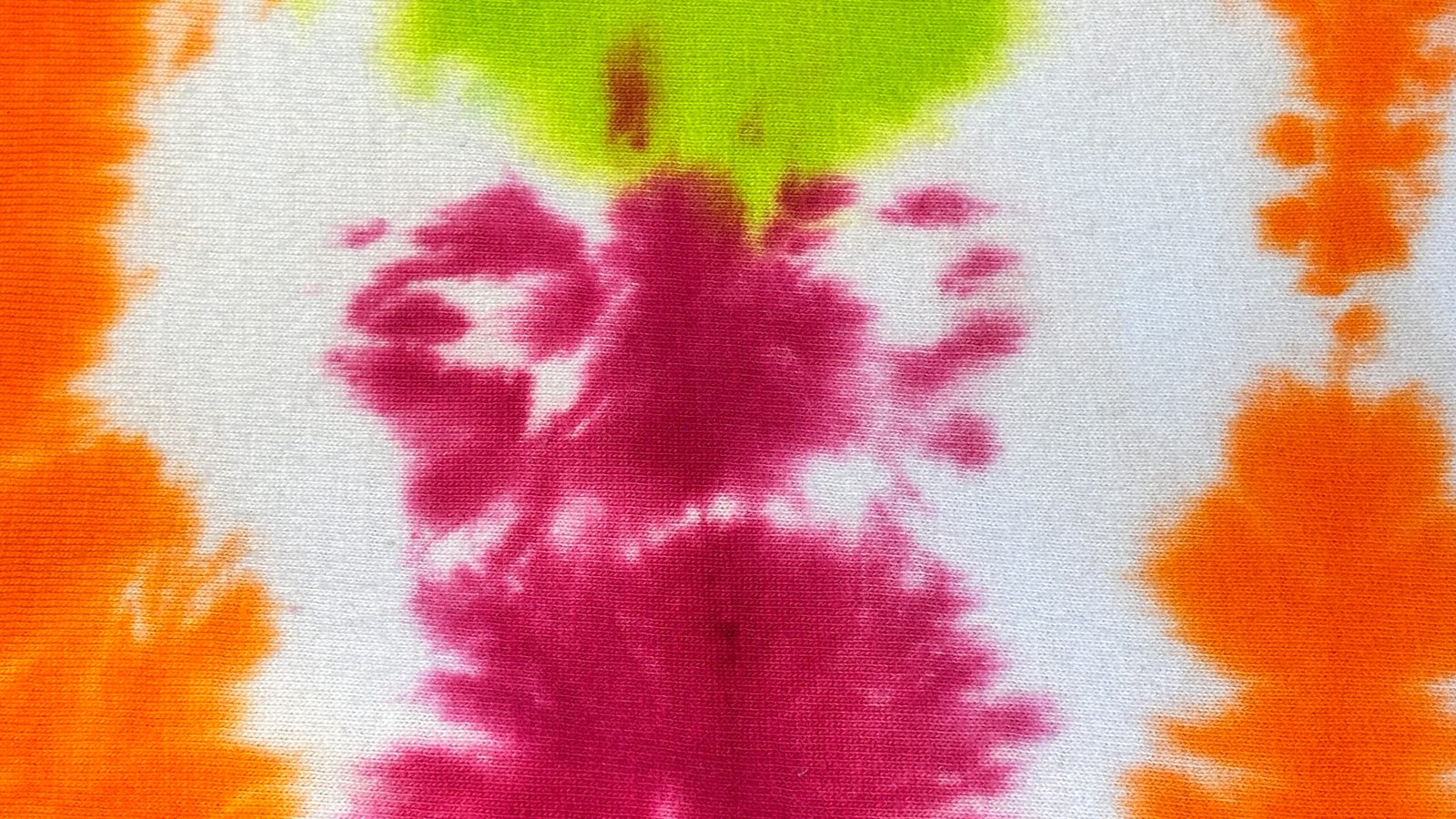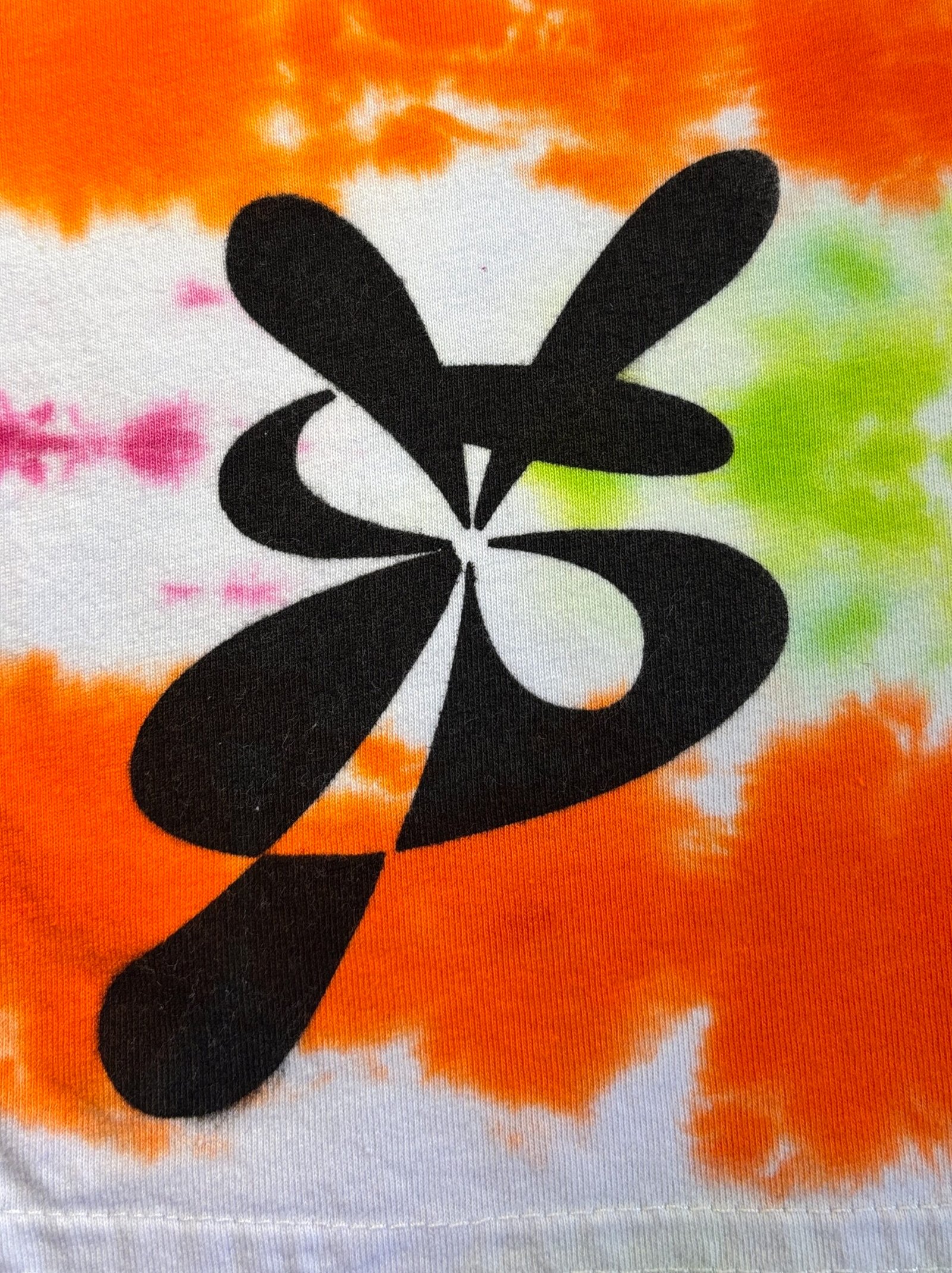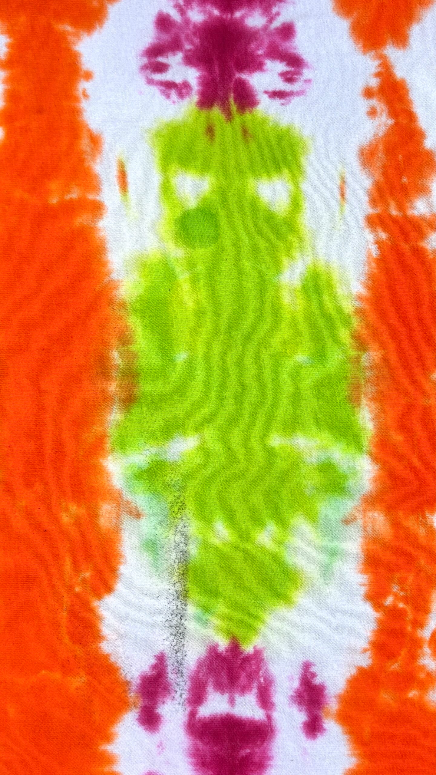 Super Flow Dyes Yo! All of my tie dye t-shirts combine kind design with vibrant and saturated colors. Santiago is smart & funny with orange, fuchsia, green blobby horizontal stripes pattern. The source t-shirt is an LAT Style 6901 – made out of their super soft 4.5 oz. 100% combed ringspun cotton jersey. Comes with EasyTearTM label. Double-needle hem sleeves and bottom. Sewn with 100% cotton thread. Produced by a WRAP certified garment factory in Bangladesh. I design and make all my tie dyes by hand with love and care in Oak Park, Illinois, USA.