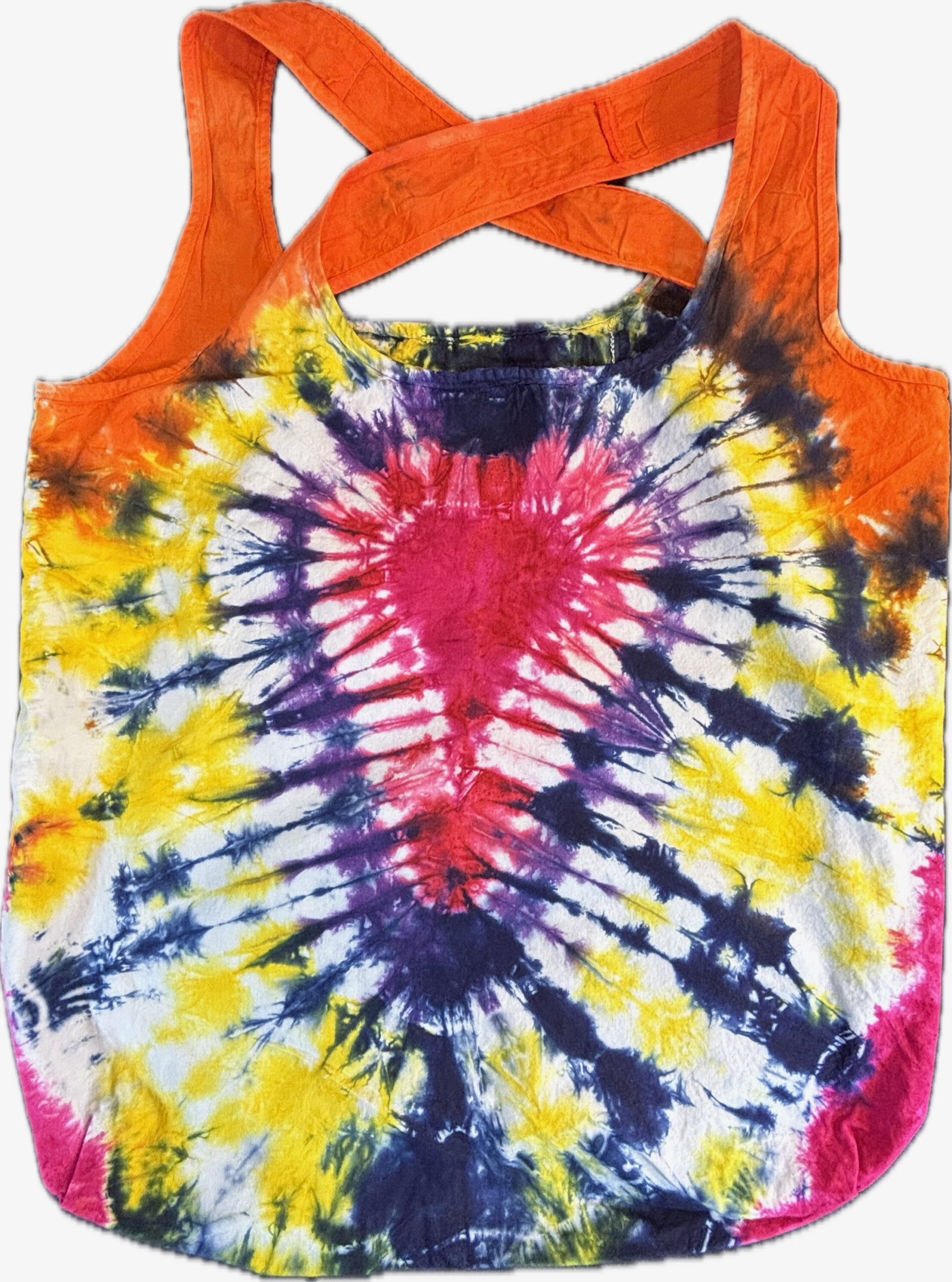 Free delivery in 3-6 daysSuper Flow Dyes Yo! I am proud to introduce comforting Carmela. All of my tie dye tote bags combine kind designs with vibrant saturated colors. This 100% cotton tote bag comes with its own 4.5 inch square pocket for storage. The pocket lays inside and works great for keys and phones and then just stuff the tote into the pocket for storage. Great for groceries and so many other uses! I design and make all my tie dyes by hand with love and care in Oak Park, Illinois, USA. Have fun and find your flow with Super Flow Dyes Yo!