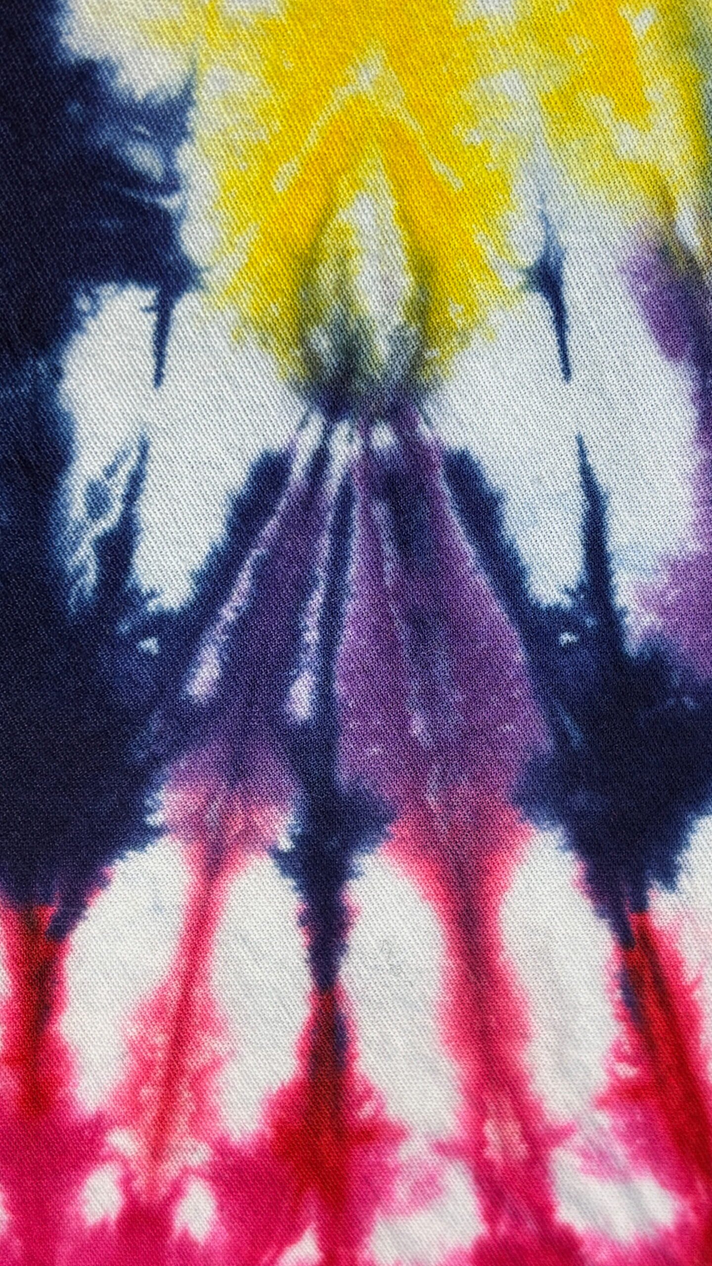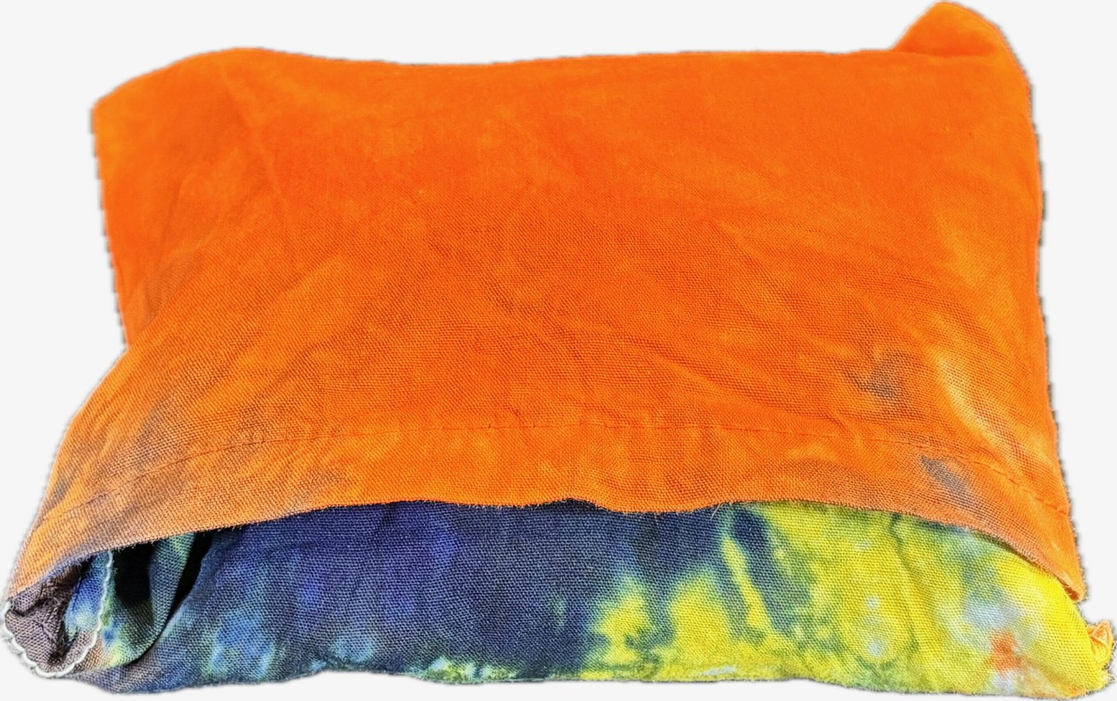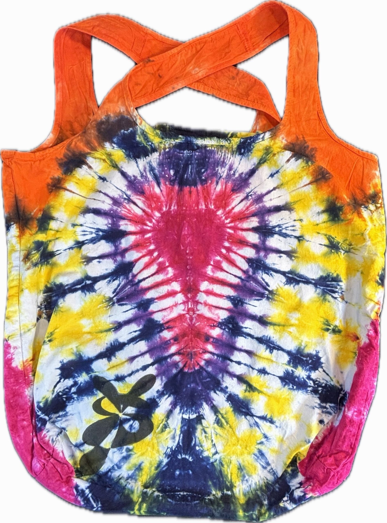 Super Flow Dyes Yo! All of my tie dye tote bags combine kind designs with vibrant saturated colors. Carmela is comforting with fuchsia, purple, blue, yellow, orange heart pattern. This 100% cotton tote bag comes with its own attached storage pocket! The pocket lays inside and works great for keys and phones. Then just stuff the tote into the 4.5″ square pocket for storage. Great for groceries and so many other uses! I design and make all my tie dyes by hand with love and care in Oak Park, Illinois, USA. Have fun and find your flow with Super Flow Dyes Yo!