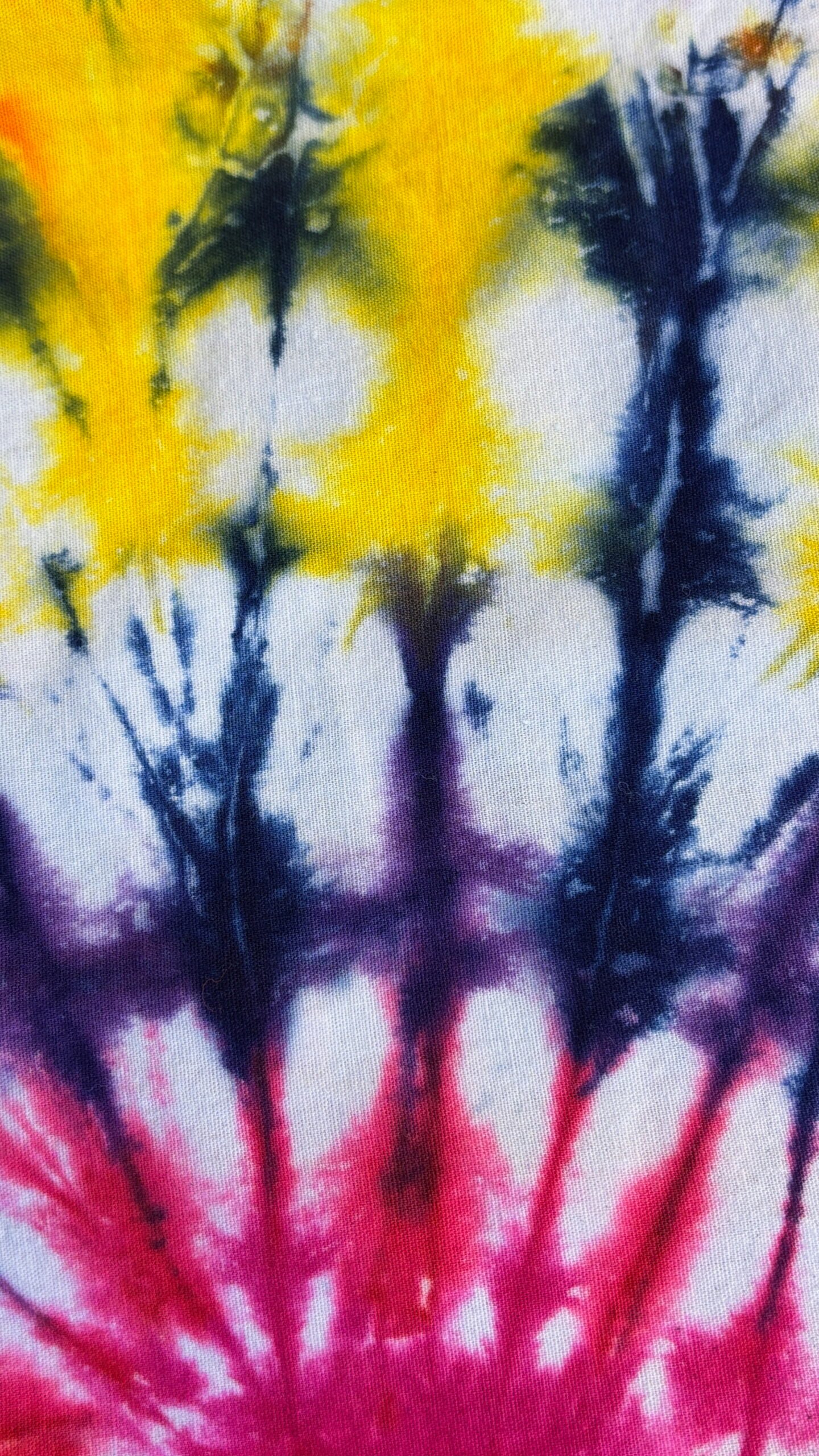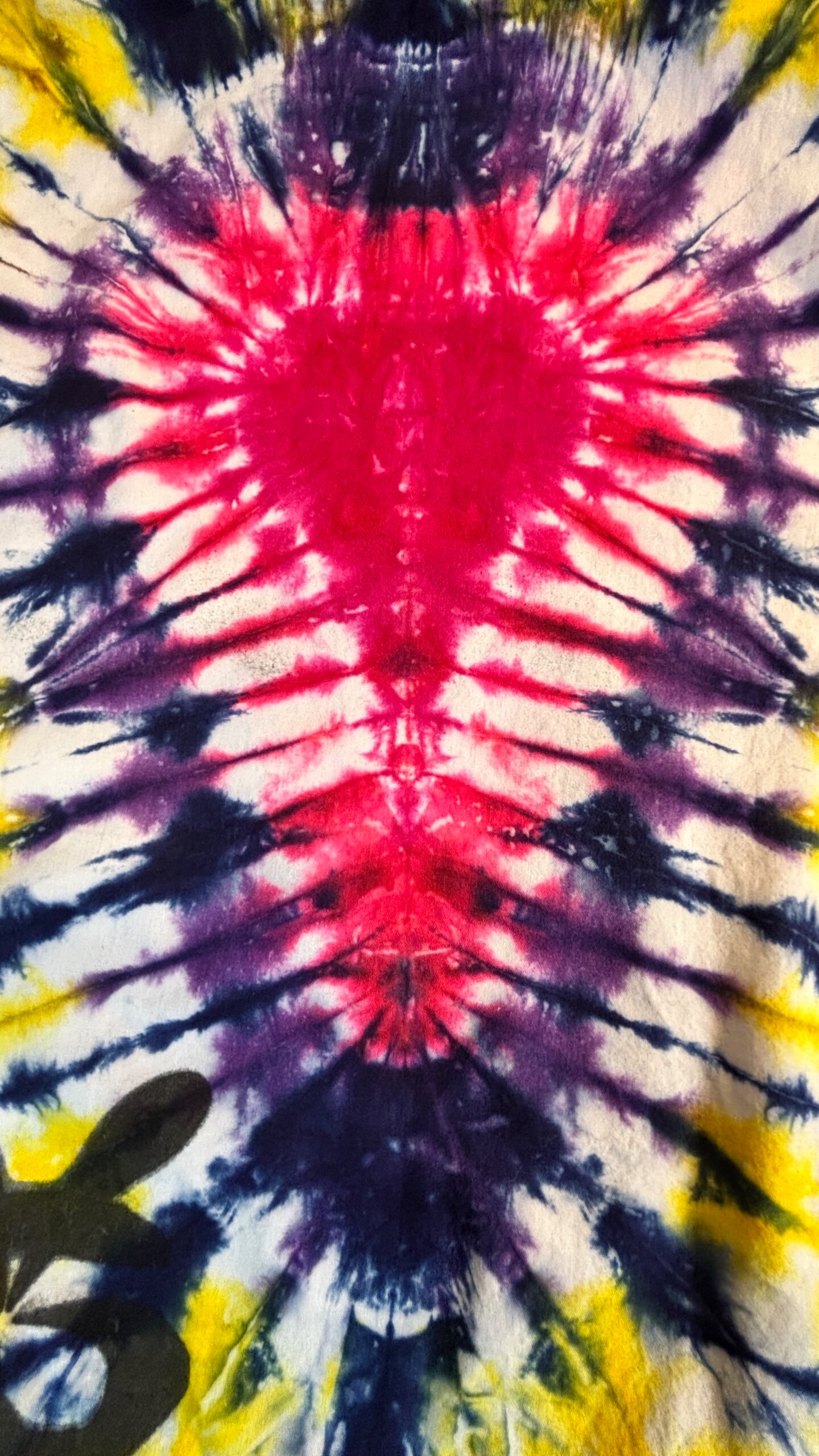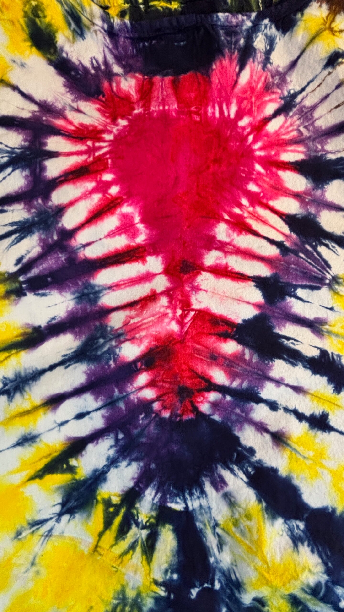 Super Flow Dyes Yo! All of my tie dye tote bags combine kind designs with vibrant saturated colors. Carmela is comforting with fuchsia, purple, blue, yellow, orange heart pattern. This 100% cotton tote bag comes with its own attached storage pocket! The pocket lays inside and works great for keys and phones. Then just stuff the tote into the 4.5″ square pocket for storage. Great for groceries and so many other uses! I design and make all my tie dyes by hand with love and care in Oak Park, Illinois, USA. Have fun and find your flow with Super Flow Dyes Yo!