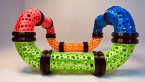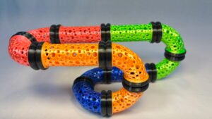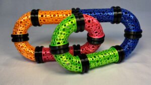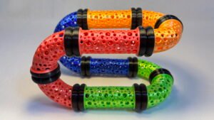 Build a sculpture you can play with! Connect Super Flow Tubes into infinite shapes and run bright LED marbles through the sculpture for a super fun and interactive flow art experience. Tubes is a marble run that looks like art that you can pick up and play with. Great for busy minds and hands. Level-up your desk or coffee table and interact with Tubes to unlock great ideas by day, and then rock the dance party with a hand-held lightshow at night. I am happy to have a patent pending (19/203,500) on Super Flow Tubes and I make Tubes in my studio with love and care in Oak Park, Illinois, USA. Have fun and find your flow with Super Flow Tubes Yo!